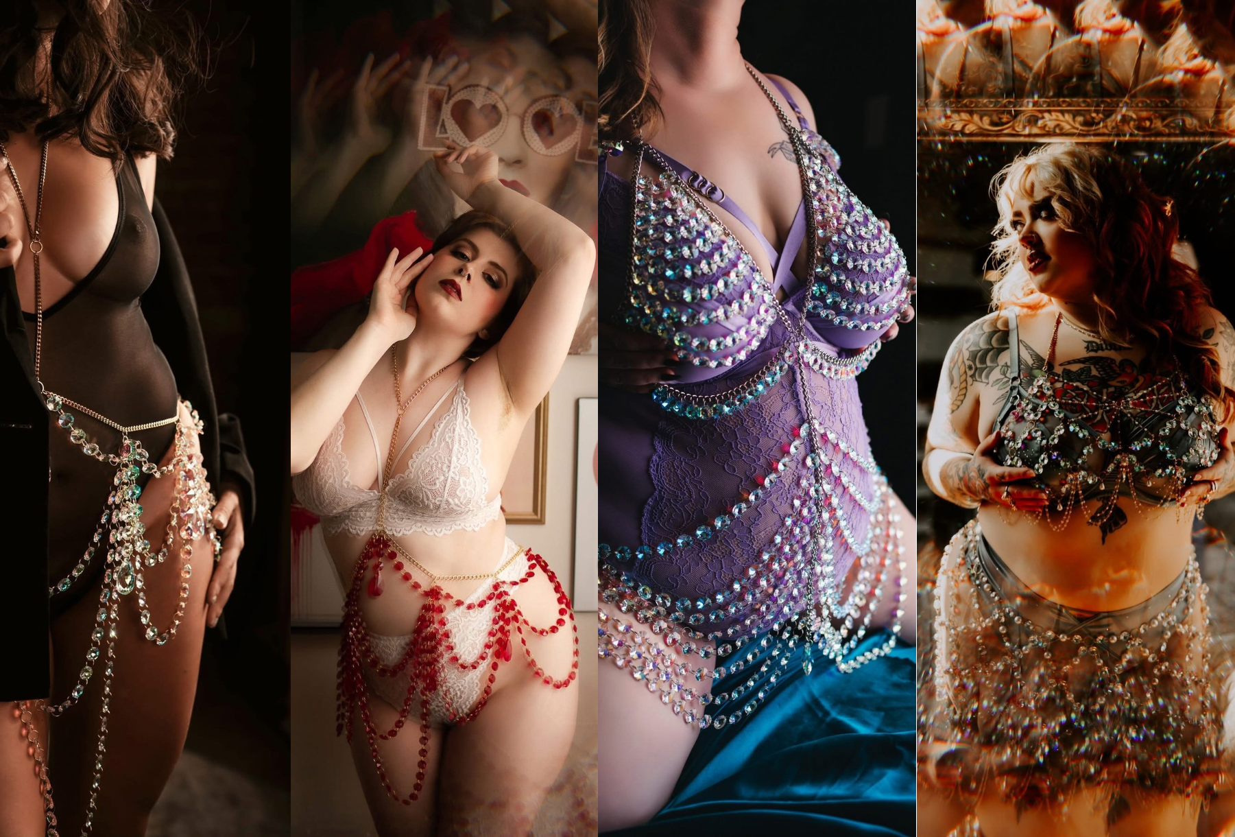 Hello! I’m Meg. I’ve been a boudoir photographer for about a decade. What inspired me to start Tailored Body Jewelry is the fact that when I was shopping for body jewelry for my boudoir clients, I couldn’t find any plus sizes. I’m a size 18 and couldn’t even find anything to fit myself. It was really discouraging. I knew I had to change the availability of body jewelry for EVERY BODY. I pride myself on being truly inclusive, and I absolutely love creating. I love you all this adventure is so worth it.