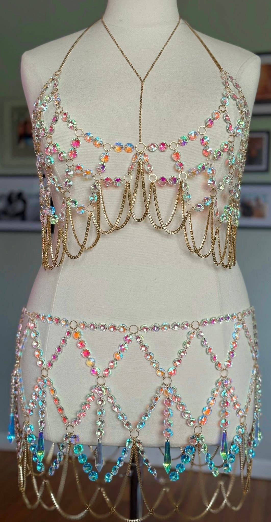 2 piece custom at the price my brand ambassadors get! Bra or crop & mini skirt or waist chain! Rhinestone additions are an add-on.