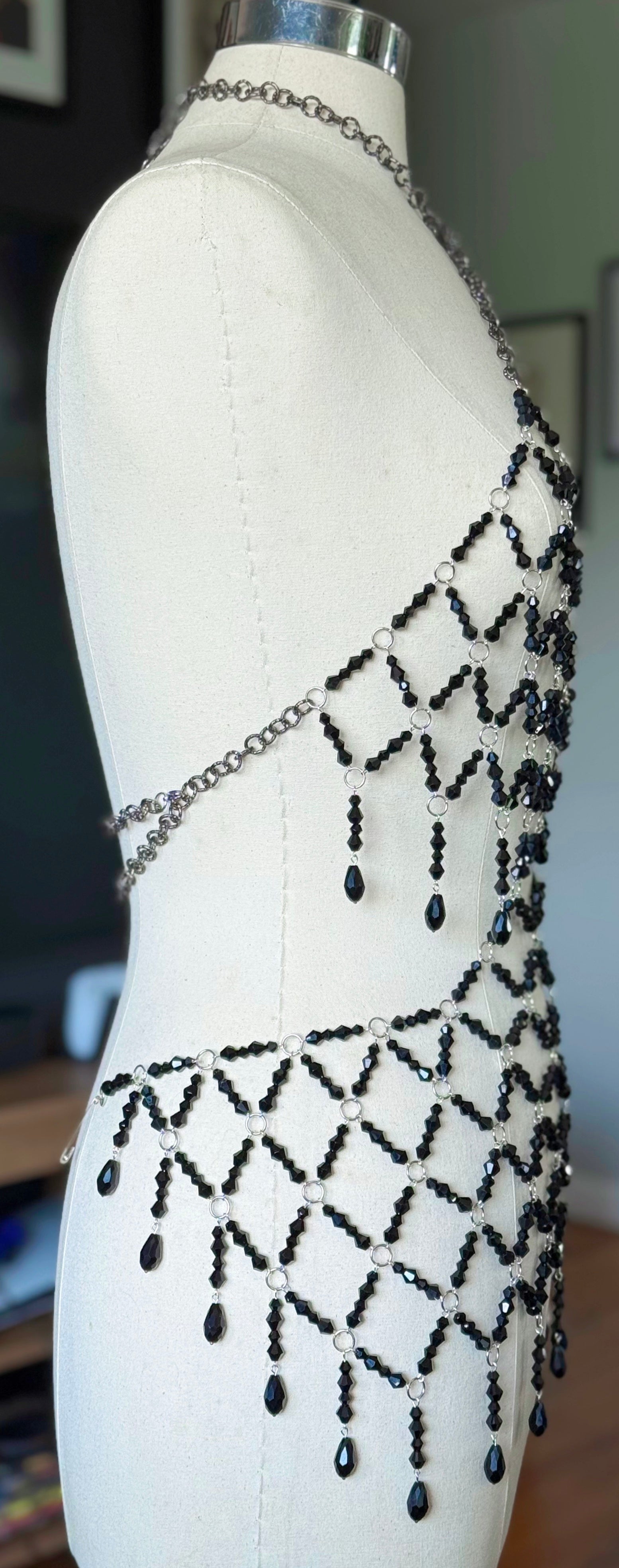 RTS super adjustable hand beaded mini dress. S-2X
